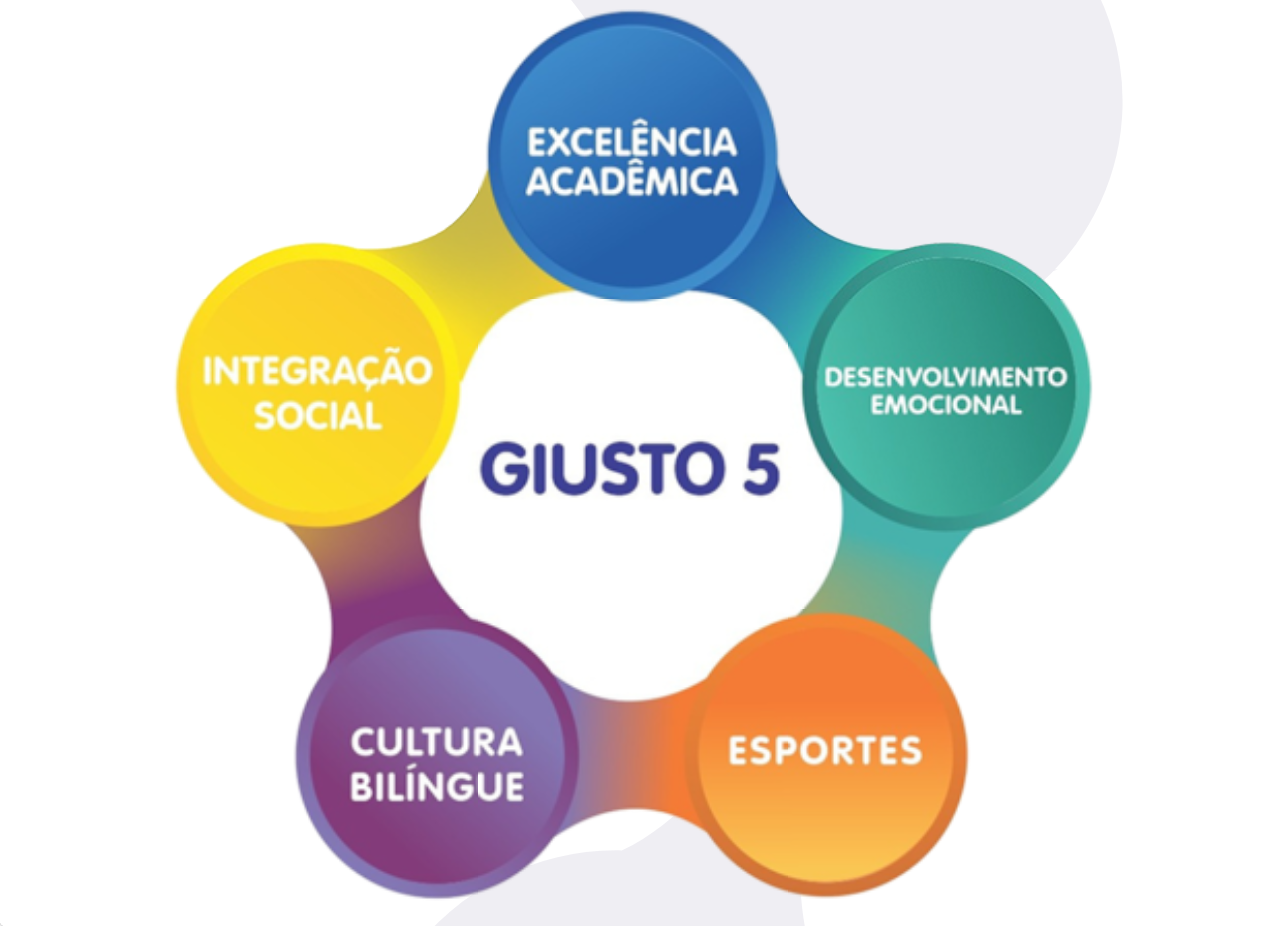 Inspirada em escolas Japonesas, Alemãs e Inglesas a Metodologia Giusto 5 combina elementos montessorianos, socioconstrutivistas, pragmatismo acadêmico e técnicas de treinamento de alta performance com o objetivo de oferecer o que há de mais moderno e eficiente em termos de educação, porém sem deixar de lado disciplina e tradição. Nossos alunos desenvolvem seus talentos naturais e trabalham as habilidades nas quais tenham mais dificuldade. Nosso propósito é oferecer a educação integral capacitando crianças e adolescentes a se tornarem adultos completos, extraordinários em um ou mais de nossos pilares, mas principalmente capazes em todos eles.